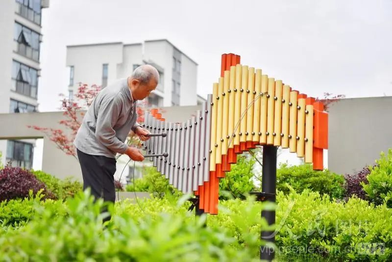 2024年5月12日,江西省南昌市,在颐养·北园的文娱室里,护理员正带领老人们开展乐器演奏训练,丰富养老人员的日常生活。